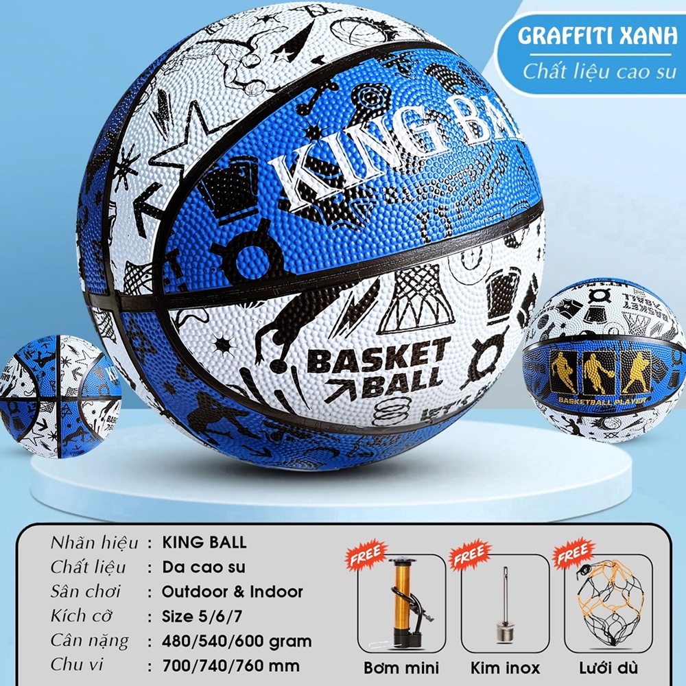 Banh Bóng Rổ Graffiti Xanh Size Số 5 6 7 Chính Hãng King Ball Quả Bóng Rổ Da Cao Su Trẻ Em Nam Nữ Học Sinh Thi Đấu Sân Bê Tông Ngoài Trời Outdoor